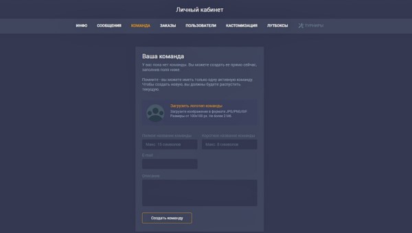 Помните - для участия в турнирах с командой нужно иметь полную команду. Например, для участия в турнирах по CS2 в формате 5х5 нужно не менее пяти человек в команде.