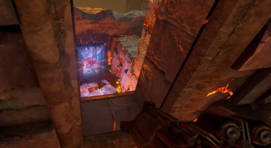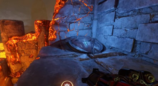 Crucible небольшая, но многоуровневая. Сделана в готическом стиле. На старте сразу видно много огня и раскаленной лавы, которые наносят урон. Поэтому игроки стараются заманить соперника под потоки лавы или в огонь. В целом передвигаться приходится очень аккуратно, но быстро. В некоторых местах лава стекает со стен.